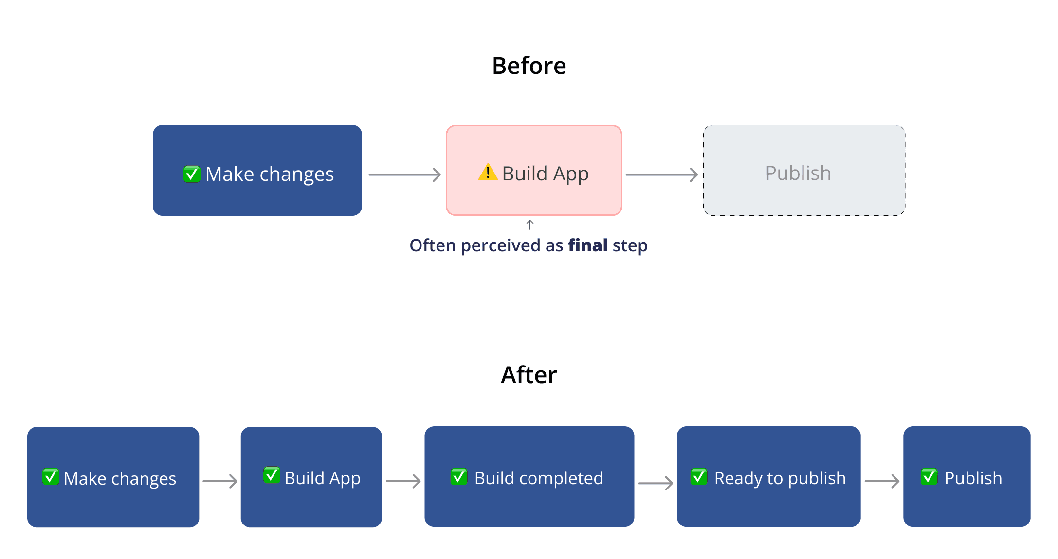 Deployment is no longer a hidden technical step, but a visible and expected part of the workflow.