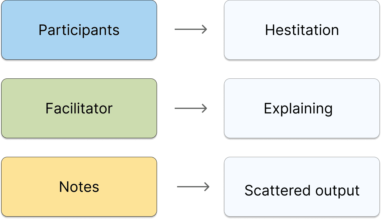 By observing real workshops and talking with designers and facilitators, a clear pattern emerged: